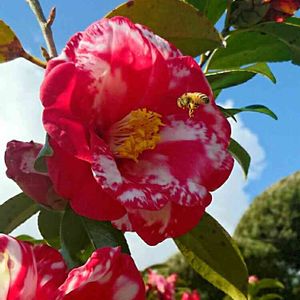 雨が上がり晴れてきたので 愛犬と実家まで歩いて行って来ました みつばちが蜜を取りに来たところをパチリ📷