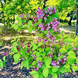 タニウツギ💕スイカズラ科タニウツギ属 5/9やまと防災パークにて撮影 花言葉は「豊麗」 豊かで美しいという意味 この花が枝いっぱいに華麗な花を咲かせる姿から連想されているようです 花言葉通り、ピンク満載🩷🩷🩷 ピンク色の噴水⛲️のように地面からピンクが噴き出しているようです GSで知って、出会いたかったお花 実際に間近で見れて、嬉しくて💕 パチリ✨パチリ✨