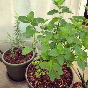 ローズマリーさんとモヒート いい香りの子達がいるとわくわく💕 大きくなぁれ〜⭐︎ #ローズマリー #モヒート