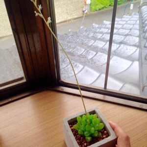 さ、さむい😵 風の強いベランダは 飛んだ小さい軽石だらけ(~_~;) 今週の仕事のお休みの日に 多肉ごとをしていたら、葉挿しを集めて挿してた発泡スチロールの箱を ザッパ〜ンとひっくり返した😨 カニを持って帰る用の箱なので かなりの大きさ😦それを片付けるだけで1日が終わりましたとさ😭 なんだか嫌なことが重なるこの頃なのですが、そんな時にシロップさんからの素敵便が❣️ お手製のガマ口やレース編み、可愛い鉢やコットンボールに九州のお、か、し😍 ありがとう❣️ おかげで癒されました💕💕💕