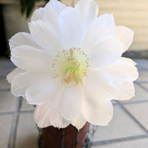 昨年DAISOで300円で購入したサボテン🌵、昨年は3回咲いたのに一度も投稿してなかった💦 今年も純白の花を咲かせてくれました。1枚目は正面から、2枚目はちょっと斜めから撮りました。 とんでもない暑さの中でも、この花は涼しげです。 香りも良い香りがします。 ただ、半日でしぼんでしまうのが残念ではありますが…。