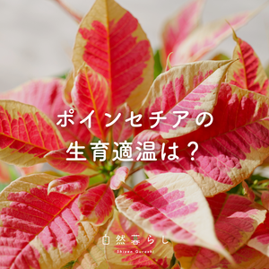 ポインセチアの生育適温は?🍂 ポインセチアは適温で育てることで美しい葉色を保つことができます。 20〜30℃の気温が望ましく、最低温度が15℃以上あるとポインセチアにとって活動しやすい温度になります。 ポインセチアは秋から冬にかけてお店に並び始める植物なので、寒さに強い植物と思われがちですが、実は寒さにとても弱い植物で、冬の時期はポインセチアにとって休眠期になります⛄❄ 10℃以下で落葉してしまうため、冬場は窓際の冷気やエアコンの風が直接当たらないように注意が必要です。温度変化が激しい場所も避けましょう。 ポインセチアは温度が急激に変化すると葉が落ちやすくなるため、特に冬場の持ち運びや室内の配置には注意しましょう。 購入後に自宅に持ち帰る際には、新聞紙や布で包んで寒さから守るとGOOD✨ ⌒¨⌒¨⌒¨⌒¨⌒¨⌒¨⌒ 自然暮らしではポインセチアの育て方を詳しくご紹介しています♪ 《初心者のためのポインセチアの育て方|美しい姿を長持ちさせる方法も》 https://shizengurashi.jp/blogs/flower/poinsettia ⌒¨⌒¨⌒¨⌒¨⌒¨⌒¨⌒