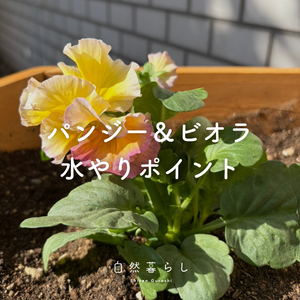パンジーやビオラへの水やりポイント🚿 パンジーとビオラは、水を好む植物ですが、過湿には弱いので注意が必要です。 基本的には土の表面が乾いたらたっぷりと水を与えます。 特に、植え付け直後と成長期には水分が必要です。 朝方に水やりをすることで、日中の蒸発を防ぎ、根がしっかりと水を吸収できます。 梅雨時や雨が続く場合は、水やりを控えめにし、過湿を防ぐ対策を取りましょう。 ⌒¨⌒¨⌒¨⌒¨⌒¨⌒¨⌒ 自然暮らしではパンジー&ビオラの育て方を詳しくご紹介しています♪ 《パンジー育て方完全ガイド!初心者でもできる育成のポイント》 https://shizengurashi.jp/blogs/flower/pansy_viola?openExternalBrowser=1 ⌒¨⌒¨⌒¨⌒¨⌒¨⌒¨⌒