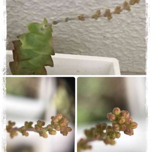 今日もどんより天気ですね💨 徒長して30センチぐらい のびのび… 仕立て直しもせずそのまま… 星の王子⭐️ (クラッスラ属) 花が咲きました🌼 小さなつぶつぶちゃんです 🏷今日はつぶつぶの日 参加させてくださいね