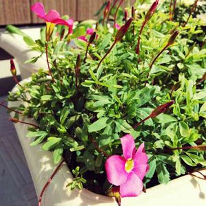オキザリス 「トリアングラリス 紫の舞」 11月16日am11:54頃 ✧p📷qω•,,´)パシャ✧ 近くに人口川のある仕事場の御昼休みに外に出た時に見つけました。 今迄に見た事が無い葉っぱです。 オキザラスは色々な葉っぱがありますね。 三角の葉っぱなんて 初めてです。 そしてムラサキゴテンと同じ位いムラサキ色 目立ちますよね。 このピンク色の花が引き立って見えました。 もち! 名前が分からないから、Googleで検索しました。 球根植物だそうです。 欲しいなぁ😍