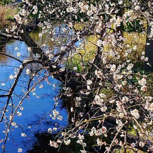 今日の散歩🚶 一之江境川親水公園⛲ 梅と水面が綺麗です👌