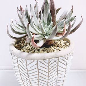 何だか理想の形とは程遠いけど、気に入ってるやつ(Part2) リメ鉢と共にぽってり白っぽく育ってます。何度まっすぐに起こしてもいつの間にか斜めになり、その斜めまでもが今ではいい感じに見えて来ました(*ΦωΦ*) 楽な姿勢で育っていいよ♡♡