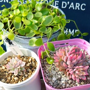 おはようございます〜(*˙˘˙*)ஐ 🏷錦の日に参加します〜😊 女雛錦さん、綺麗に紅葉して お子ちゃまも、少しづつ大きくなってます〜‹‹\(´▽` )/››💓 左の女雛錦さんは、1度は 諦めたけど、復活してきてるよ〜( 灬˙▽˙灬 )💖 maronchanが見つけて、一緒に 買ってきてくれた、ペペロミアの真亜子さん、ふんわり柔らかな色で癒されます〜☺️💓