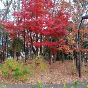 夕方の散歩道 公園の雑木林のモミジ🍁が綺麗でした