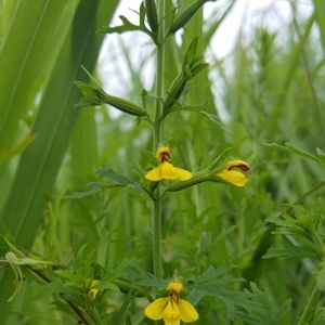 ヒキヨモギ∞引蓬 ハマウツボ科 半寄生植物 草丈70㌢程 お花は1.5㌢弱 赤く伸びた雌蕊が 雛鳥のくちばしの様です🐤 筒形で先が5つに裂けた咢も お花の様で可愛いです💚