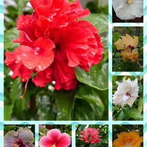 ハイビスカス☆ 連休最終日…今日も…雨…☔ 雨の中、今日は7種類が咲いています🌺 コロナもやばくなってきたし…😱明日から仕事行きたくないなぁ…🤣