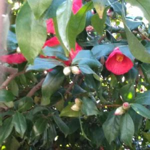 散策の通り道に有るお宅の垣根に 、大輪の椿が咲いていました。