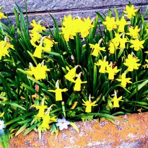 散策の通り道に有るお宅の花壇に、ミニラッパ水仙が、咲いていました。