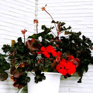 昨日の1枚です。 散策の帰り道、ご近所のお庭の壁に、ゼラニウムが紅葉🍁かな?素敵でした。