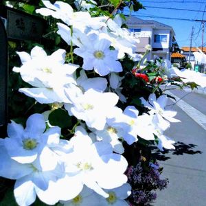 散策の通り道のお宅に、白いクレマチスが、綺麗に咲いていました。