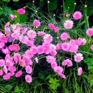 散策中の出会いです。 ご近所の花壇に、可愛いお花が、咲いていました。葉っぱがコスモスの葉っぱみたいで、花は小菊みたいなお花です。