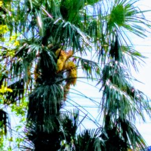 通り道の畑にシュロの木が有り、花が咲きそうです。