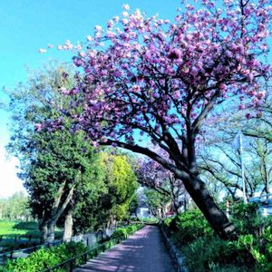 水元公園の遊歩道です。 八重桜と青い空が、 綺麗でした。