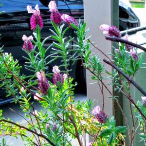 散策の通り道のお宅の花壇のお花です。 「フレンチラベンダー」 のお花が、以前通った時より、色鮮やかに成っていました。肥料が良いのかしら❓