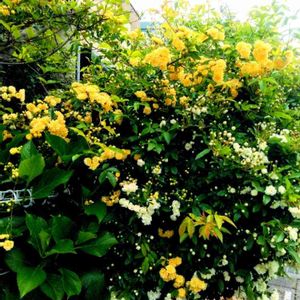 ご近所のお庭の、黄色と白のモッコウバラが、綺麗でした。