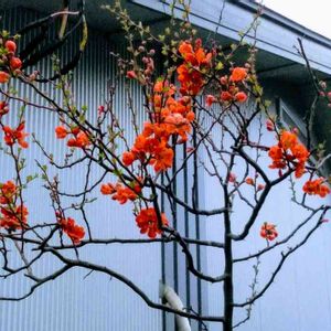 散策の通り道の、町工場の垣根に、背の高い木瓜の木が、有りました。 お花が綺麗でした。