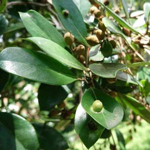 家からいつも行くスーパーまでに、18本 反対側には17本のイスノキが街路樹で植えられています。 花や種を意識して見た事はありませんでしたが、植え込みの中には何本も小さいのが生えています。 イスノキは花より虫こぶの方が目立っています。