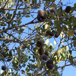 おはようございます😄 近くを散歩していたら一本だけこんな木が😁 鶏の卵サイズの実?がたくさんなっていました🤔 ツバキとかではないんですよ。 実の中は空っぽで軽かったです。 どなたかご存じないでしょうか?
