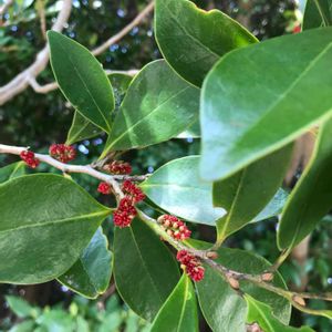 イスノキ 柞の木 かなぁ? 1/2 教えてください。 イスノキだとすると 昨日投稿した ヒュウガミズキと 同じ科。 マンサク科イスノキ属の常緑高木 静岡県以西の本州、四国、九州及び沖縄に分布。関東地方ではあまり馴染みのない木だが、関西以西では普通に見られる。のだそうです。 ヒュウガミズキの 実殻を 撮影した後、見っけました。 都立赤塚公園の植物多様性保全エリア付近ですが 自生しているのか?植えられたものなのか?よく分かりません 私の ヘンテコリンな 目には さっき見っけた ヒュウガミズキと似てるー! コッチも エイリアンだー!と感じました。 調べてみて イスノキに たどり着いたのですが… イスノキは 虫コブが 特徴的なのだそうです。 そんなの あったっけ ??? 葉っぱ 、キレイだったけどな。 続けて 葉っぱも 投稿しますね もし イスノキなら 春、3月~5月 赤いお花が咲くようです。 虫コブ あるかな?も併せて また 見てきますね ! 撮影 2021 2/7