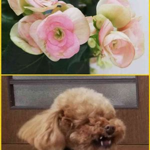 「初笑い」でもう1枚🙏 エラチオールベゴニアも長く咲いてくれてます。 あくび1秒前の🐶💦 ブサ顔GET⚠️ 笑ってるような🐶 皆さんも笑ってやって下さい🤭➰💦 年始から🐶←失礼しました🙇⤵