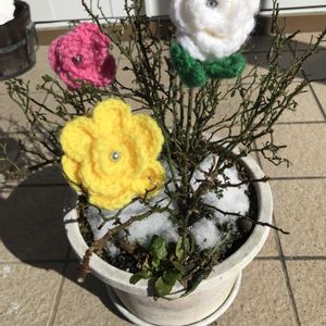 寒波からは少しずつ脱出して来てるようです 先週は大雪に見舞われ、スリップ事 故や転倒、いつまでも終わらない雪 かきに大変な思いをされた方も全国 あちこち多かったでしょうねー 報道で見る雪の凄さに驚くばかりでした〜 雪国の方特にお疲れが出ませんように〜🙏 ①万博公園近くのモールに入る人気のお花屋さんで見たとっても素敵なイエローのスプレーバラのサニートレンドセッター💛 絞りのようなロゼット咲きが特徴だそうです〜 可愛すぎですよねー😍 ②今日はニットの日🧶 忘れそうでしたが少し前にGS友さんが教えて下さって、私も自分のネックウォーマー↘️編みました ↖️は以前にGS友さんが編んでくださった作品たち 猫ちゃん尻尾のコースターには好きなカップを載せてカフェタイム ☕️🐈🐈⬛🎀 今年の寒さは格別 ニットが役立ちますよねー 昨日の丸一日子守り、共働きの息子夫妻の苦労がわかりましたー でもやっぱり可愛かったなー☺️ 🏷️ニットの日 🏷️月曜にはビタミンカラー 🏷️月曜にはバラを 🏷️夜なべっこ 🏷️編み編み♪ に参加させて下さい 🏷️ありがたハッピー❤︎100均 🏷️夜なべっ子プレゼント企画 もお願いします🙇♀️