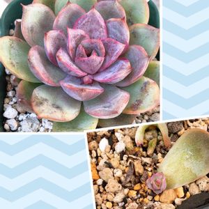 真ん中がミリネらしくなってきた☺️ ↖️親株 ↘️葉挿しっ子