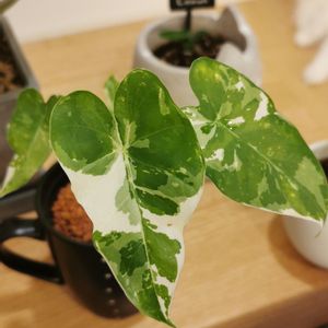 アロカシア?クワズイモ? この違いがまり良くわかってませんが 来たときより葉っぱが増えました♪ 新葉は緑が多い葉っぱのようです。 白いのより濃い濃い緑色が バランス良くあるほうがかっこいい✨ 高い斑入りクワズイモと 安い斑入りクワズイモの違いとは…?🤔
