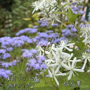 ♡センニンソウと青花フジバカマ(西洋フジバカマ・ユーパトリウム) 庭のセンニンソウと青花フジバカマ先週も投稿しましたがあれからドンドン咲いてきたので再投稿させて下さいネ! センニンソウは成長がすごいので6月に強剪定しそれからほぼ毎日のようにカット✂️し形を整えました 昨年青花フジバカマを下に植栽し青花と白花の共演を楽しんでいます😆 🏷️白い水曜日♡ 🏷️水曜日は水色