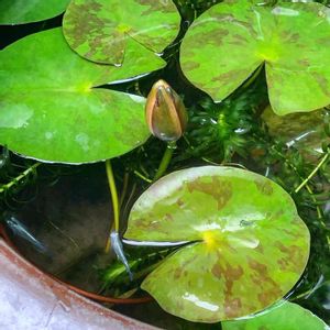 おはようさんです。庭の睡蓮鉢で今年一番花🌺✨