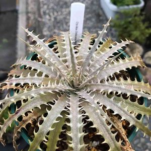 今日の新入り。 Dyckia Delicata Hybrid 黄色っぽい色合いが気に入ったのですが今後どうなっていくのか不明。 ディッキアはあまり持ってなくて品種等あまりよくわからないので見た目一択で選んでます。 抜き苗で買ったので次の休みにでも植え付けようと思います。