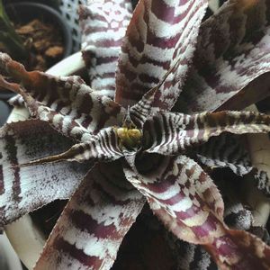 焦らす系の花が多い中 昨日の今日で咲きました。 葉っぱの主張の強さとは真逆の 控えめで小さい可憐な花でした。 がんばったで賞💮 -クリプタンサス ブラックビューティ- -Cryptanthus black beauty-