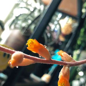 ディッキア氏の花。 水滴が付いてると思って触ったら ガムシロップみたいにベタベタ。 舐めたらめっちゃ甘かった。 蜜、出し過ぎ注意報発令しました。 -ディッキア- -Dyckia Hybrid-