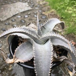 Dyckia Marnier-lapostollei var. estevesii ディッキア・マルニエルラポストレイ var.エステべシー 購入から1年ちょっと経ちました。 だいぶ大きくなりましたが水が足りないのか葉先がよく枯れる。。。 購入した時はピンクがかった色をしてましたが今は真っ白な感じです。 個人的には艶のあるディッキアよりトリコーム?が多いタイプが好みです。