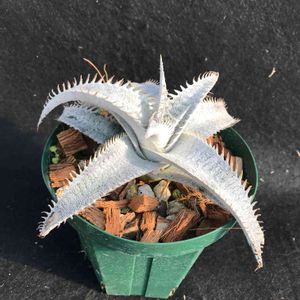 ディッキアの原種 Dyckia marnier lapostollei ver. estevesii ディッキア マルニエル ラポストレイ バー エステべシー マルニエル ラポストレイの地域変異の個体です。普通種よりトリコームが濃くて真っ白になります。 子吹きもよくなかなかかわいいディッキアです。 ( ^∀^)