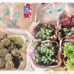 万博ロハス1stでお連れした 多肉ちゃん達です 左上から 碧魚連・姫秀麗・大和姫 左下から センペルビウム(バニラシフォン)・子持ち蓮華・ふっくら娘 珍しい物は無いけど ゆっくりペースで多肉ちゃん集め中😌 やっとこれでトトの日🐟参加できるよぉ〜♪ 子持ち蓮華もいーっぱい増えると良いなぁ〜(*´꒳`*) 水曜日から日曜日まで長崎の実家に帰省✈️ 植え替えは京都に戻ってきてからやる予定です😅