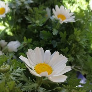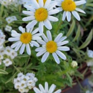 おはようございます(*´∇`*)ノ 今朝は眩しい☀ 我が家のマーガレット🌼🌼🌼 これ、なんと2株🌱🌱 毎日モリモリ〜💕 今に下のギホウシさん達、見えなくなりそう…😁 今週も宜しくお願いします🤗