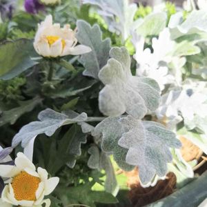 おはようございます(*´∇`*)ノ ☀️だー😄 今日の花シロタエギク🤍さん ノースポールさんとの寄植え