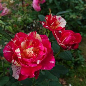 「モーリスユトリロ」 Σp📷ω・´) 11月21日 11 月5 日に投稿した時に蕾だった、ユトリロが咲きました。 今回は赤が多めで咲いています。 この絞り柄が良いんだよね🥰