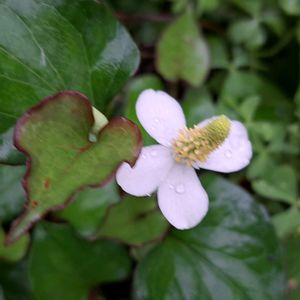 一重ドクダミ 咲いていました 🍃葉を見ると ニシキドクダミの様です 幼なじみお友達 MIX犬男の子 足がスッと長く ハスキーと柴犬さん入っている 感じです 落ち着いています 雪!はクンクンしていました ちっとも怒らずにクンクンさせて くれました…