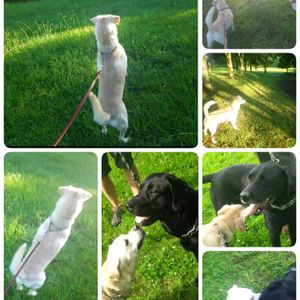 久しぶりに逢えました アカツメクサ 秋田犬さん男の子12歳とご挨拶 クンクンして 幼なじみさん一緒に訓練して 遊んでいました…