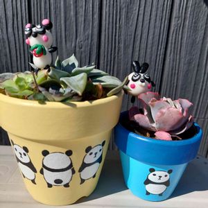 🏷️パンダの日 🏷️オケツの日 2日連続で12時間勤務で写真を撮る時間がなくて💦職場に45さんのパンダ🐼鉢を持って行き休み時間にバシャッ🤳 何とか参加出来ました🐼💛🐼💙