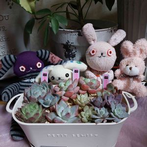 明けましておめでとうございます🎍🐇 今年もよろしくお願いします🙇♀️ まつぴよさんのソクラビ🐰ちゃん達で 🏷️毎月3日は耳の日 参加します🐰 あっ💦右側のウサギちゃんだけは前に100均でお迎えした子です🐰 12月最後かな?ショップ45さんからタイミング良くお迎え出来た韓国苗をうちの多肉さんと寄せ植え?しました😆 右側から2人目のソクラビ🐰ちゃんはその時お迎え出来た子です💗