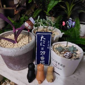 今日は🏷️トトの日 サニコさんのリメ缶と鉢シリーズに 新しくヤドカリ缶も加わりました🎶🎶 碧魚連🐟️は何とか夏を乗りきりましたが💦ダメージ強くだいぶ減りました💦 えつこさんの鉢のタコさんに新しく お迎えした碧魚連🐟️を植えました💚 なのに💦バッタに喰われてました😭 ジュンさんの編み編みタコ🐙ちゃんと タイヨウさんのお魚ピック可愛いい❤️