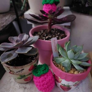 久しぶりに 🏷️毎月15日はいちごの日 に参加します🍓 奥はベニツカサ💜 左のさくら餅子さんのミィーといちご鉢 にはパールフォンニュルンベルグを植えました💜 右は2年前にお迎えした45さんの韓国苗のチワワエンシスといちご鉢🌱🍓 一応イチゴのつもり🤣の編み編みイチゴさん🍓💗 ハロウィン月間だからお化けイチゴだわ🤣🍓👻