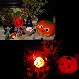 🏷️ダークハロウィン 🏷️ハロウィン 🏷️ソクモン祭り 18時頃はもう暗いです🌃 ↖️フラッシュ📸で撮影した時 ↘️フラッシュ📸を使わなかった時 雰囲気が違って来ますよね😂 まつぴよさんのデビモンちゃんとお化けカボチャライト🎃💡 みちのすけさんのハロウィンの置物👻 園芸店で見つけたパンプキンライト🎃💡 参加させて下さいね👻🎃🐵🧹 植物がわかりにくいから突破出来ない かもです😅